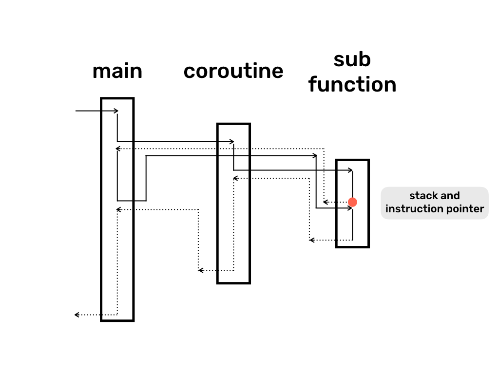 Coroutines do not schedule themselves. They rely on a scheduler or event loop. The scheduler tracks which coroutines are ready to run and which are waiting on external events.