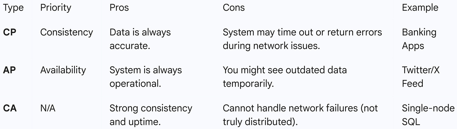 The CAP Theorem (also known as Brewer’s Theorem) is a fundamental principle in computer science that helps engineers design distributed systems (systems where data is stored across multiple computers or “nodes”).