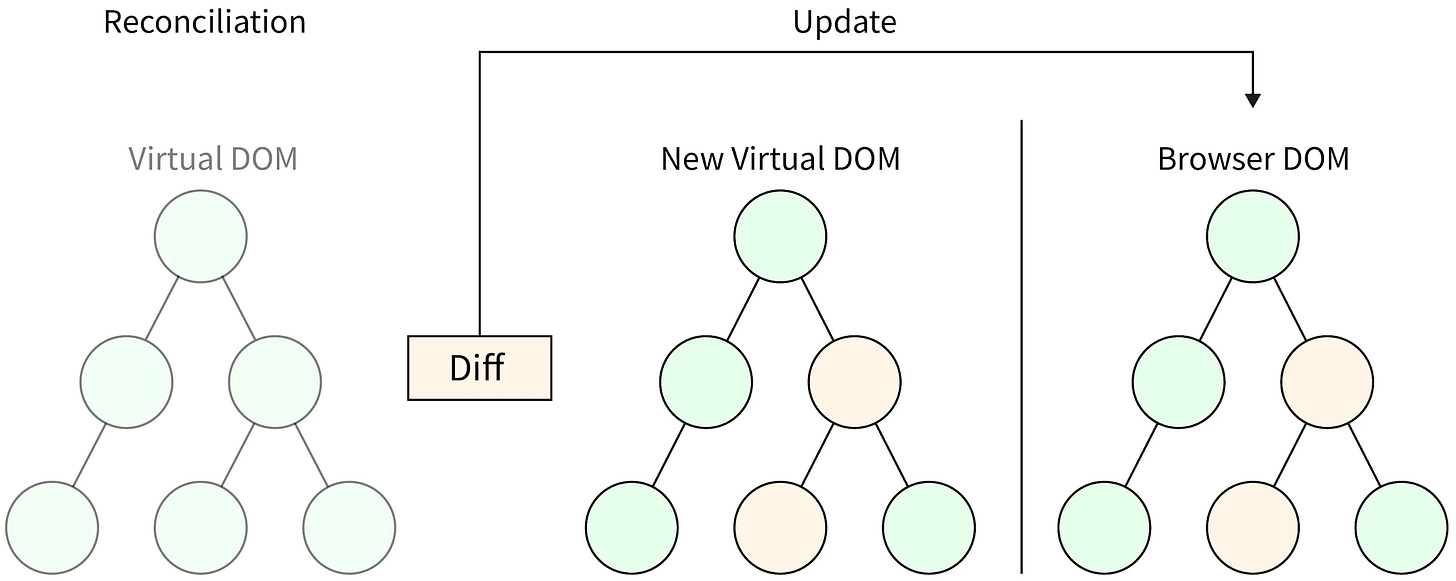 Some newer frameworks compile DOM updates ahead of time and avoid a runtime virtual DOM. Others still use one but optimize aggressively. The key takeaway is that the virtual DOM is one solution to the UI update problem, but it was a crucial one historically.